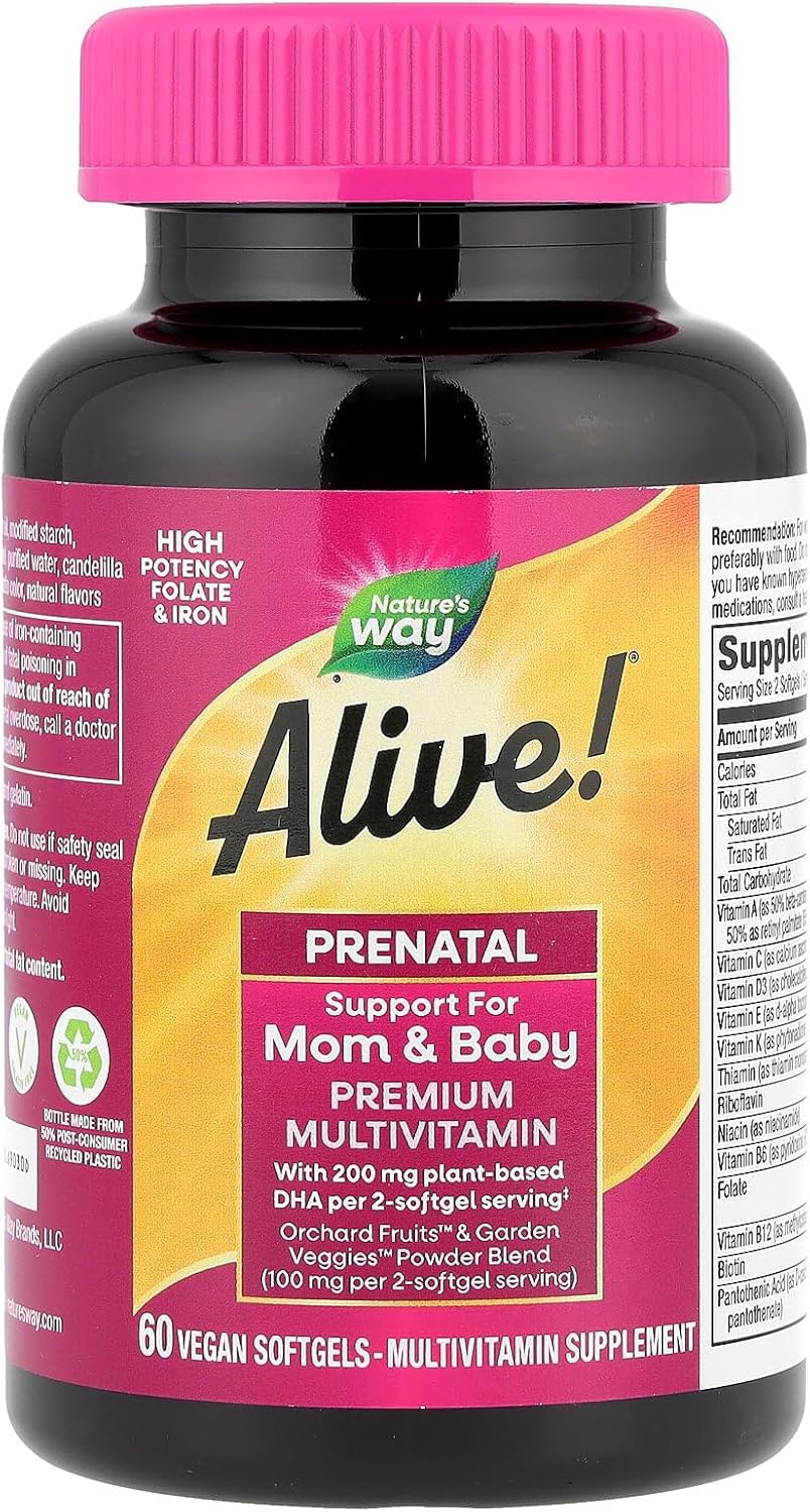 Nature’s Way Alive! Complete Premium Prenatal Multivitamins for Women, Healthy Eye and Brain Development*, 60 Vegan Softgels