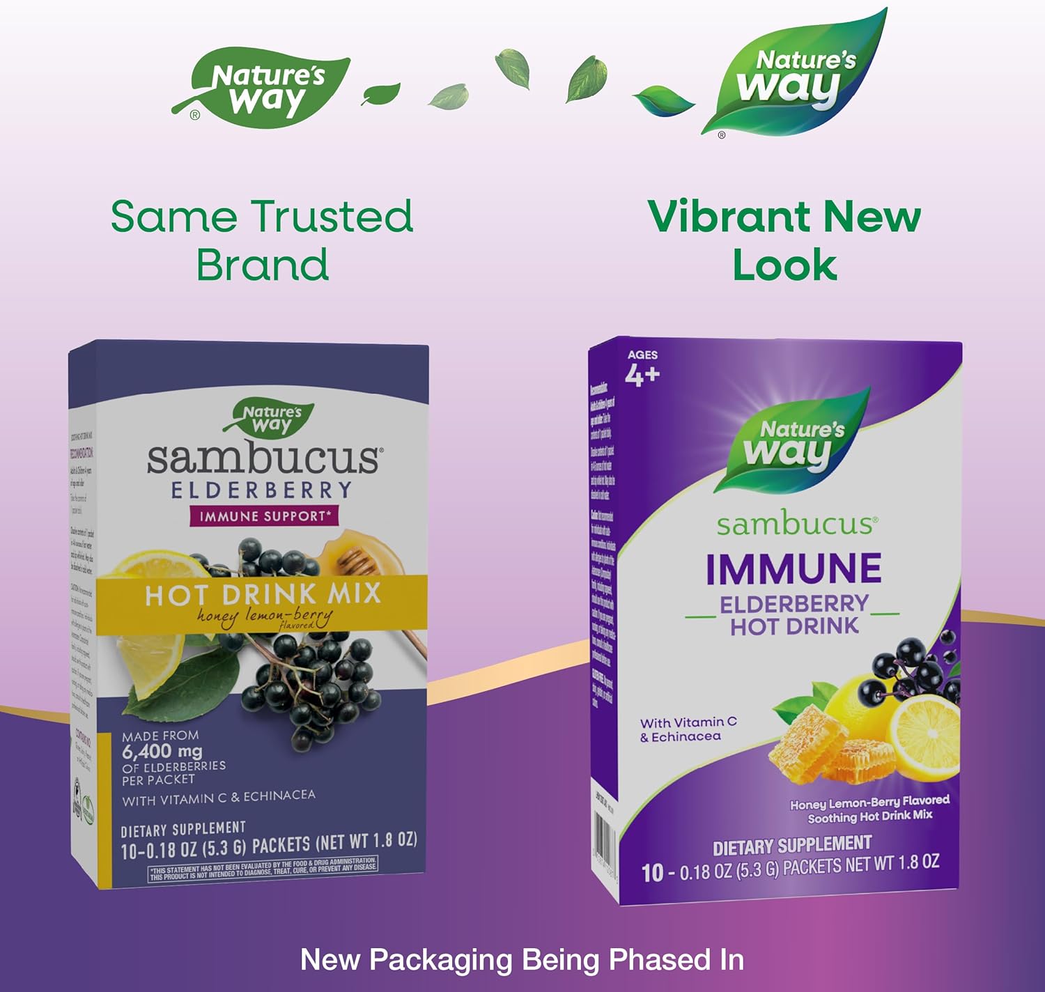 Nature’s Way Sambucus Elderberry Hot Drink Mix with Vitamin C and Echinacea, Immune Support*, Honey Lemon-Berry Flavored, 10 Packets (Packaging May Vary)