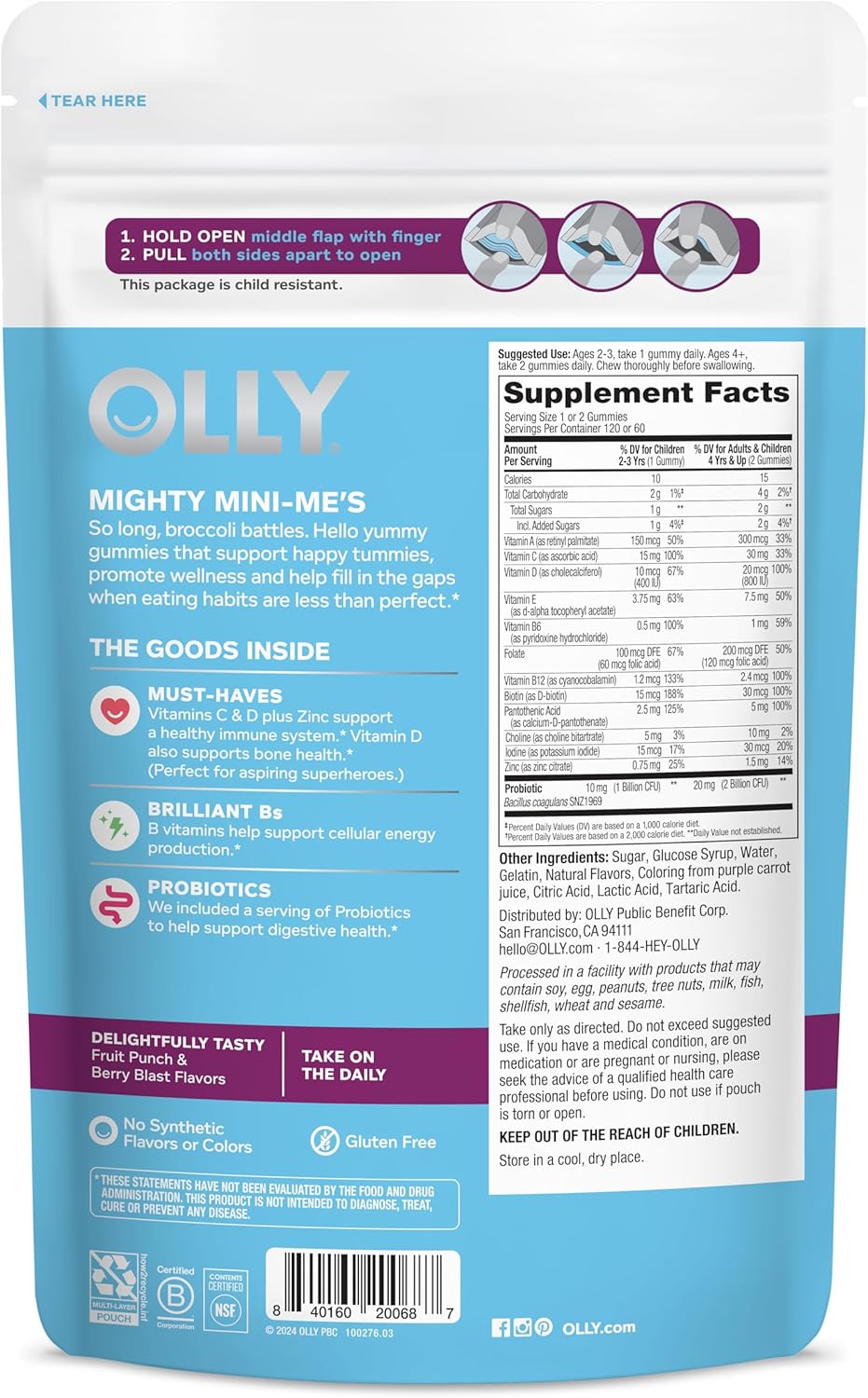 Be the first to review “OLLY Kids Multivitamin & Probiotic Gummy, Digestive Support, Vitamins A, D, C, E, B, Zinc, Chewable Supplement, Berry Flavor, 60 day supply – 120 Count”