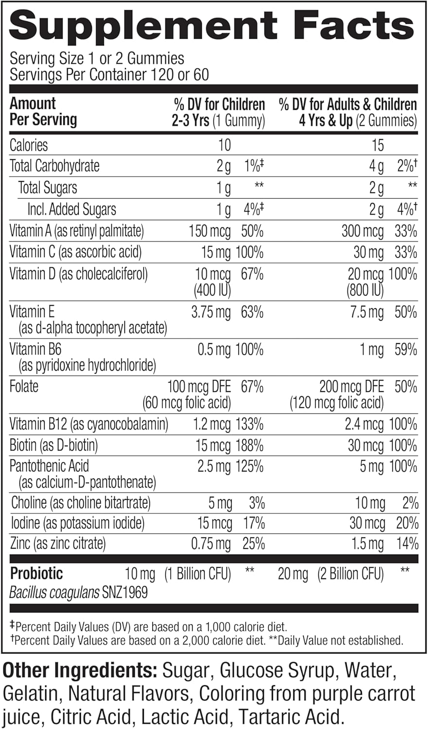 OLLY Kids Multivitamin & Probiotic Gummy, Digestive Support, Vitamins A, D, C, E, B, Zinc, Chewable Supplement, Berry Flavor, 60 day supply – 120 Count